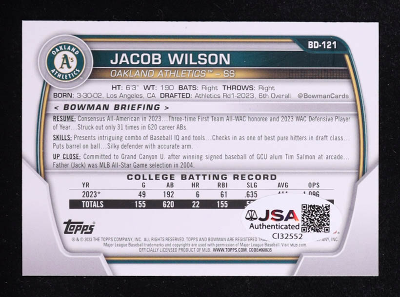 Jacob Wilson 2023 Bowman Draft #BD121 RC