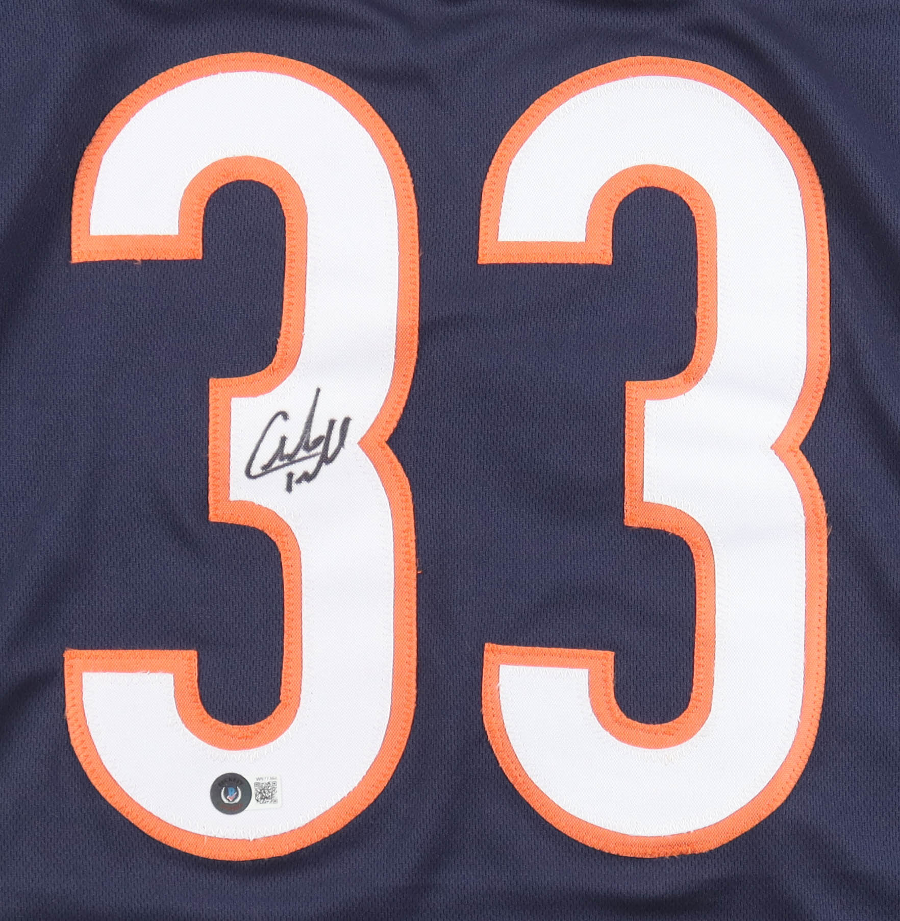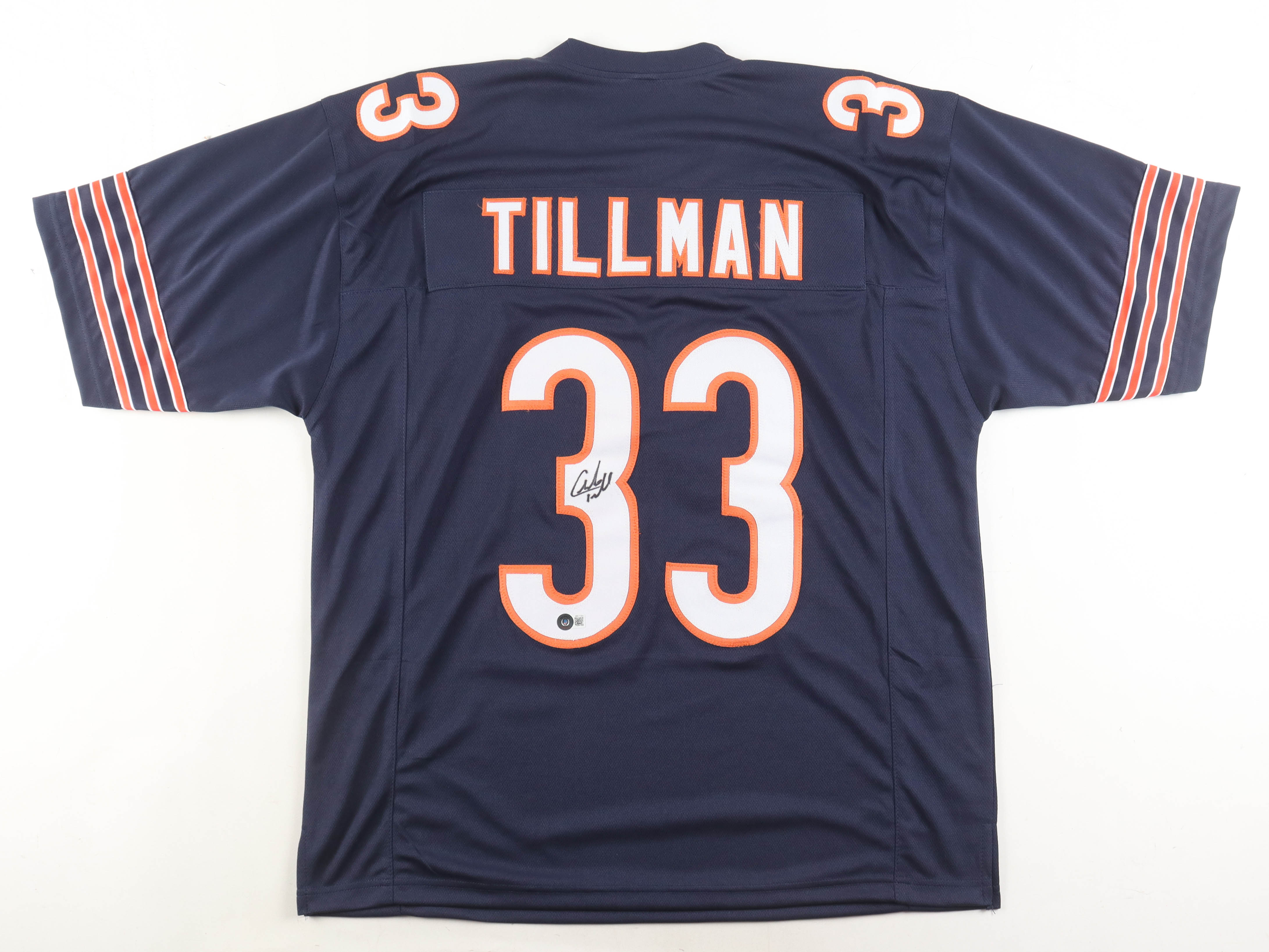 Custom jersey with everything sewn on, size XL. Hand-signed by Charles Tillman.