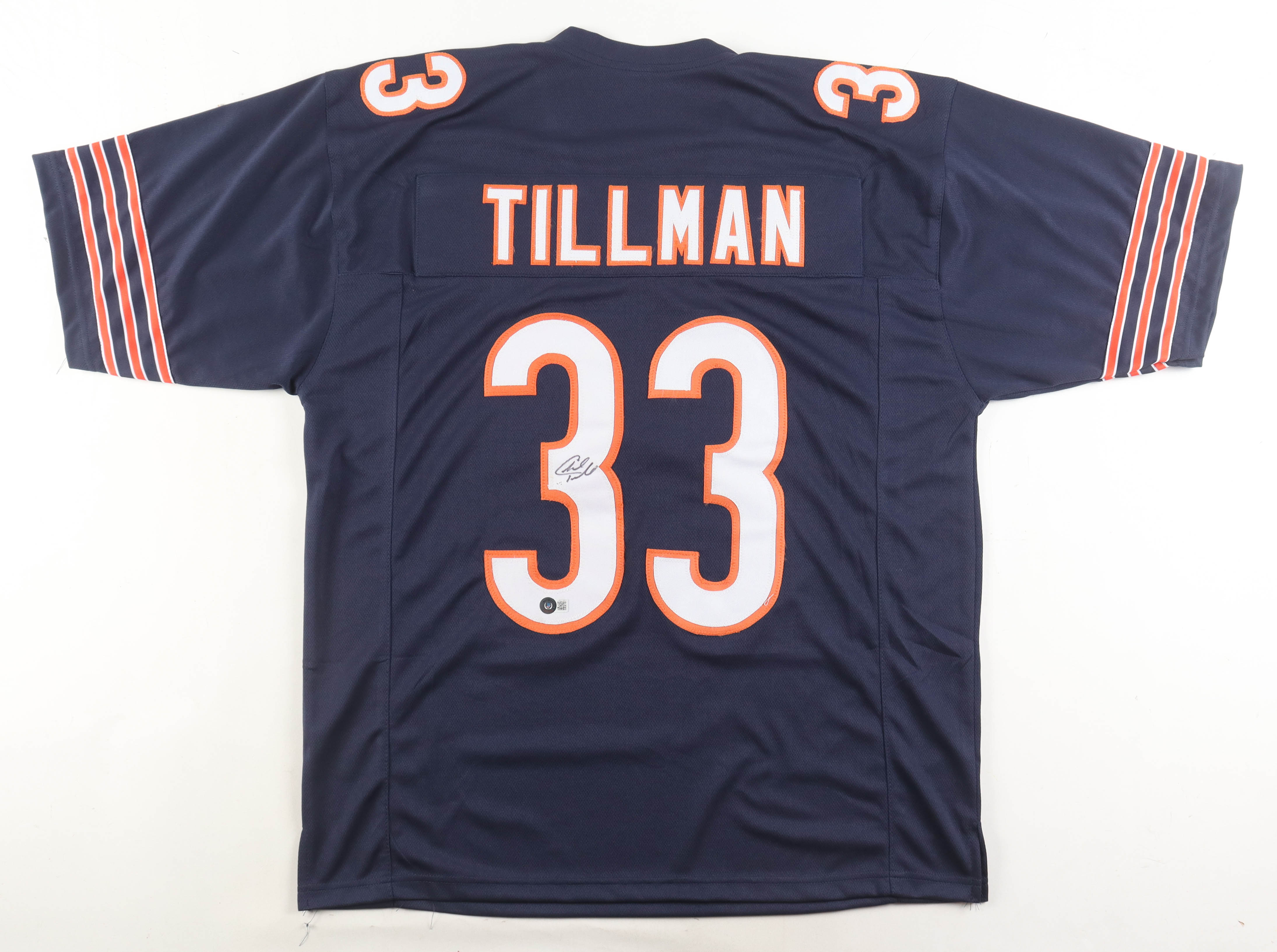 Custom jersey with everything sewn on, size XL. Hand-signed by Charles Tillman. Please note, there is staining to the left of the reverse number. See photos regarding the condition of the item.