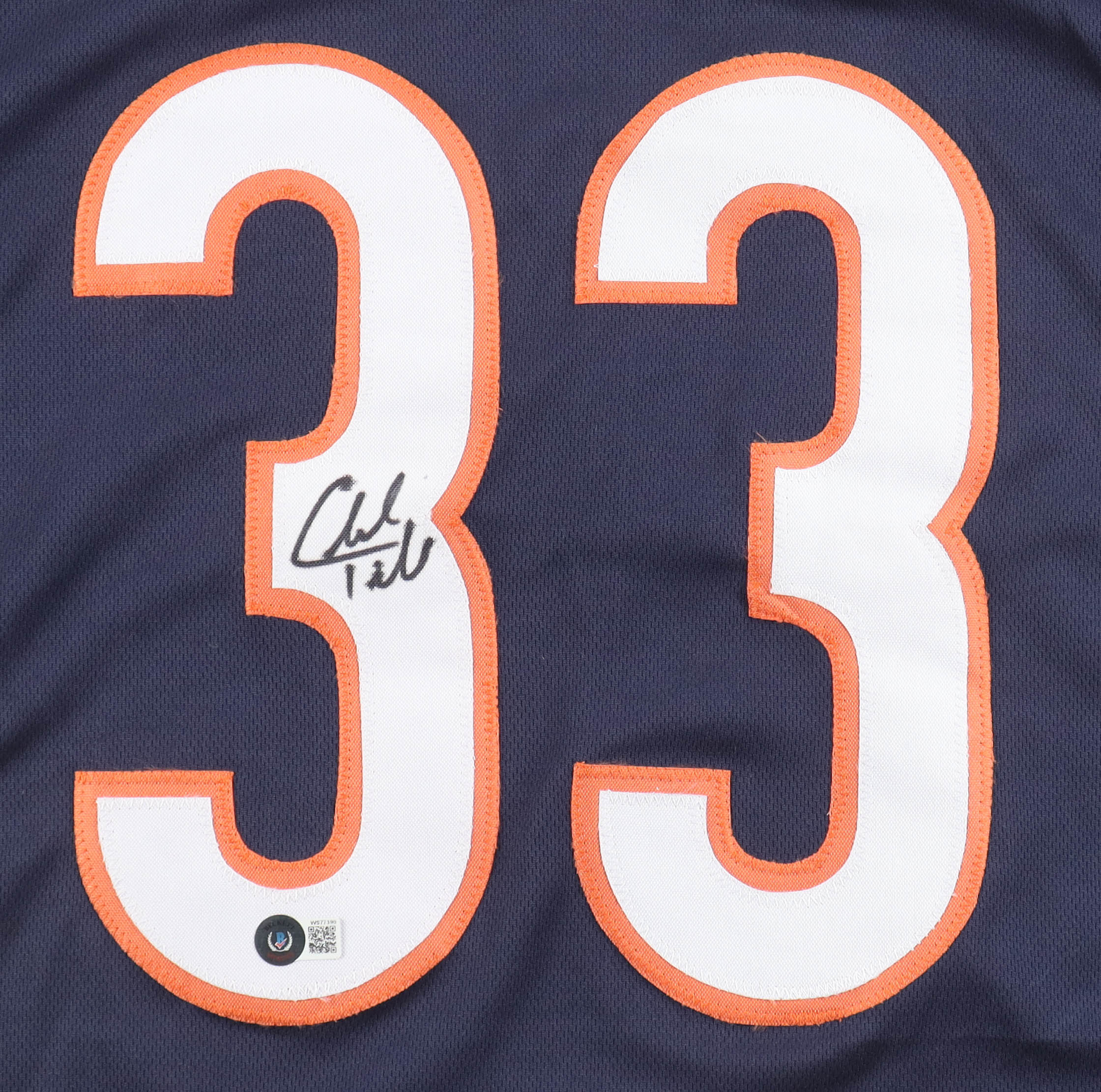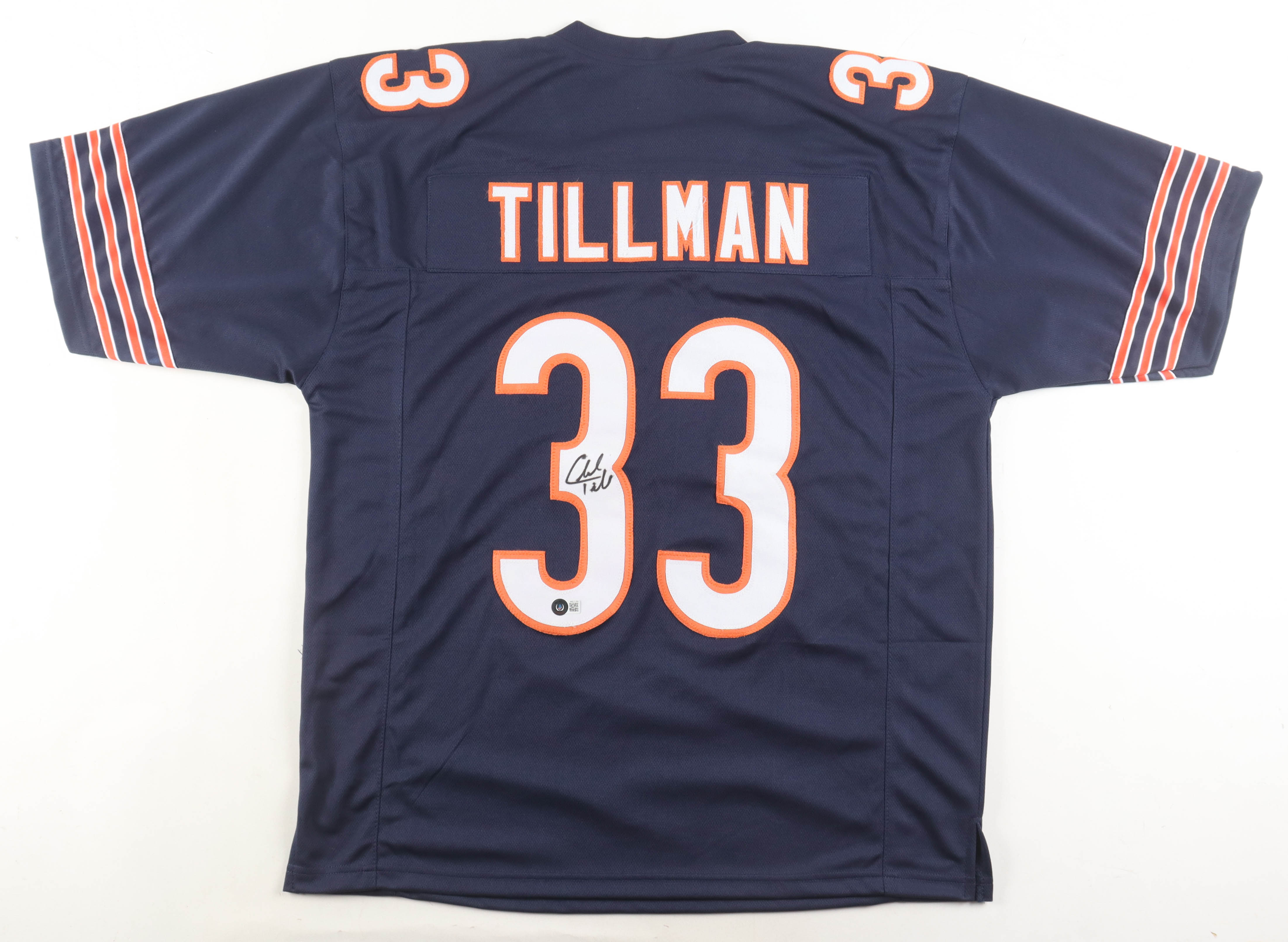 Custom jersey with everything sewn on, size XL. Hand-signed by Charles Tillman.