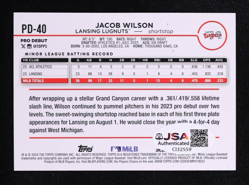 Jacob Wilson 2024 Topps Pro Debut #PD40
