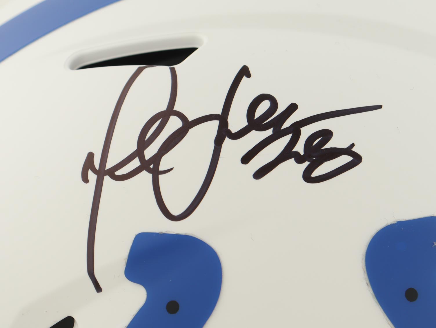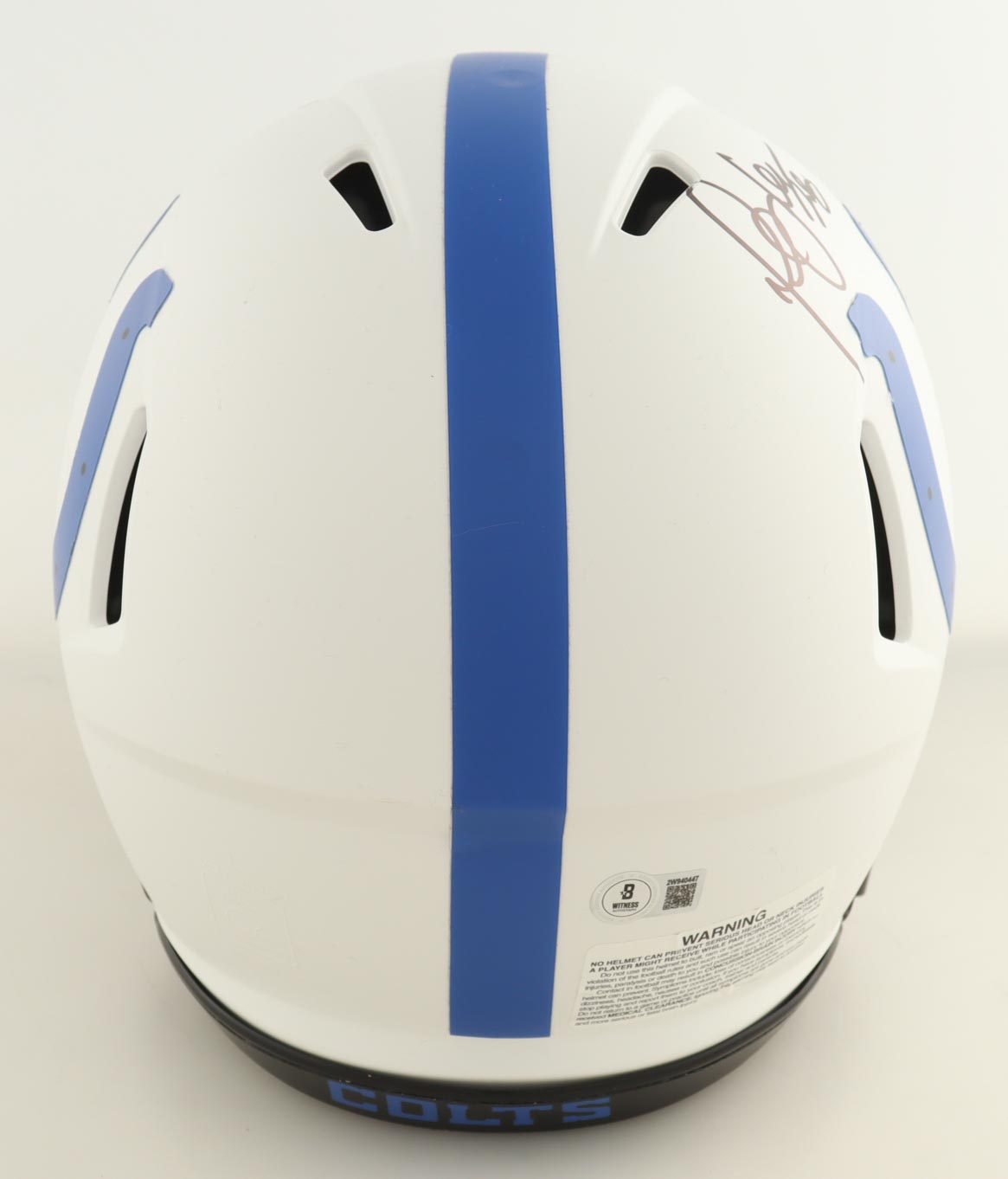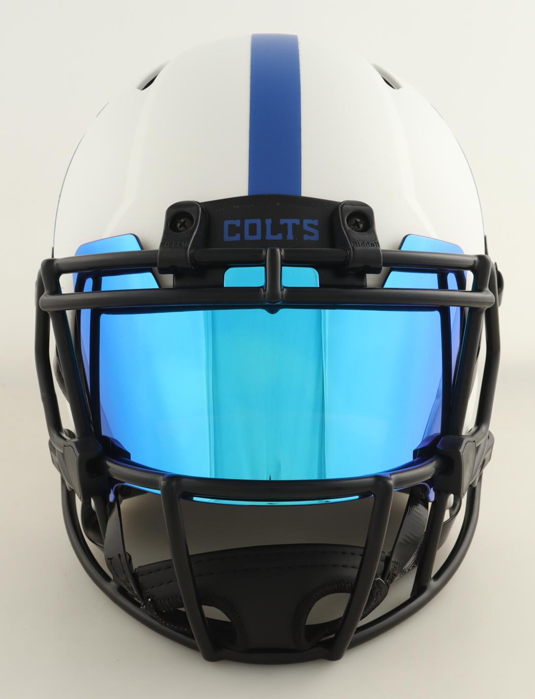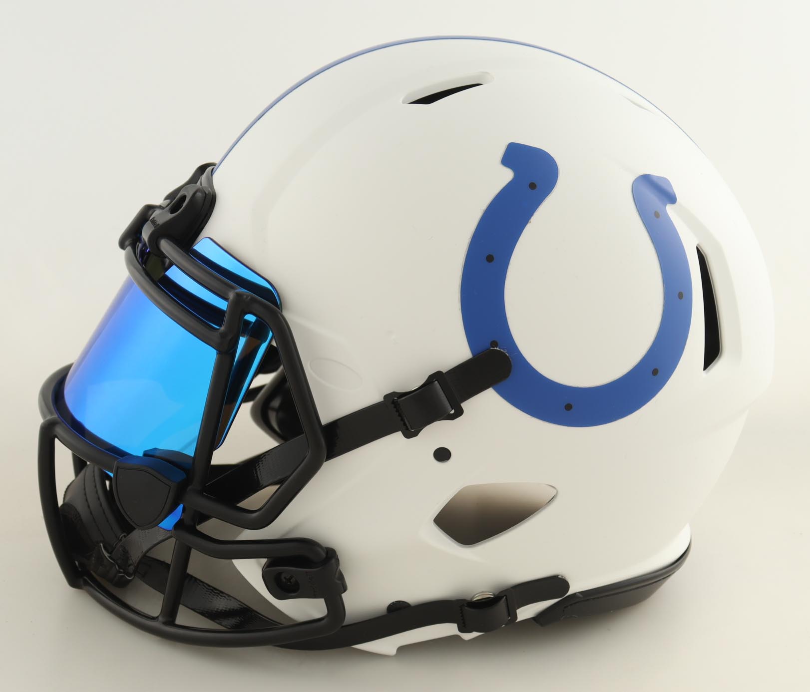 Riddell Indianapolis Colts full-size authentic on-field lunar eclipse alternate speed helmet with custom visor has been hand-signed by Marshall Faulk (HOF).