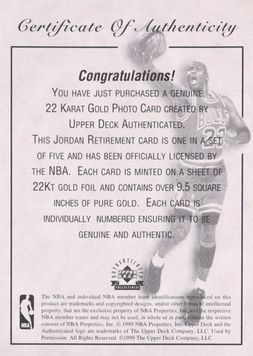 Michael Jordan 1999 Upper Deck Jordan Retirement 22KT Gold #NNO