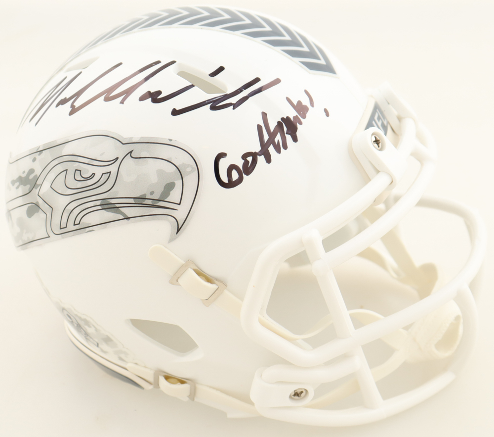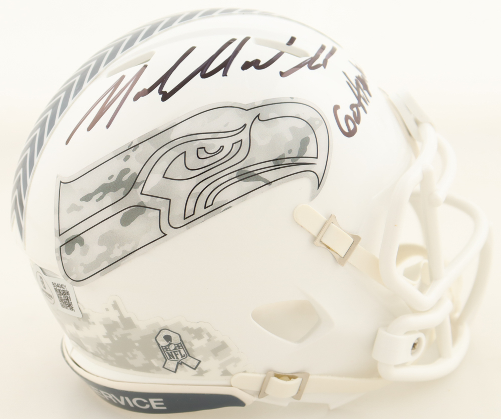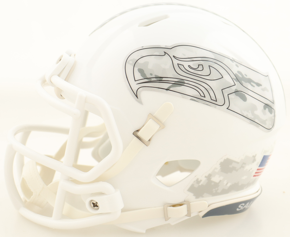 Mike Macdonald Signed Seahawks Salute to Service Alternate Speed Mini Helmet Inscribed "Go Hawks!" (Beckett)
