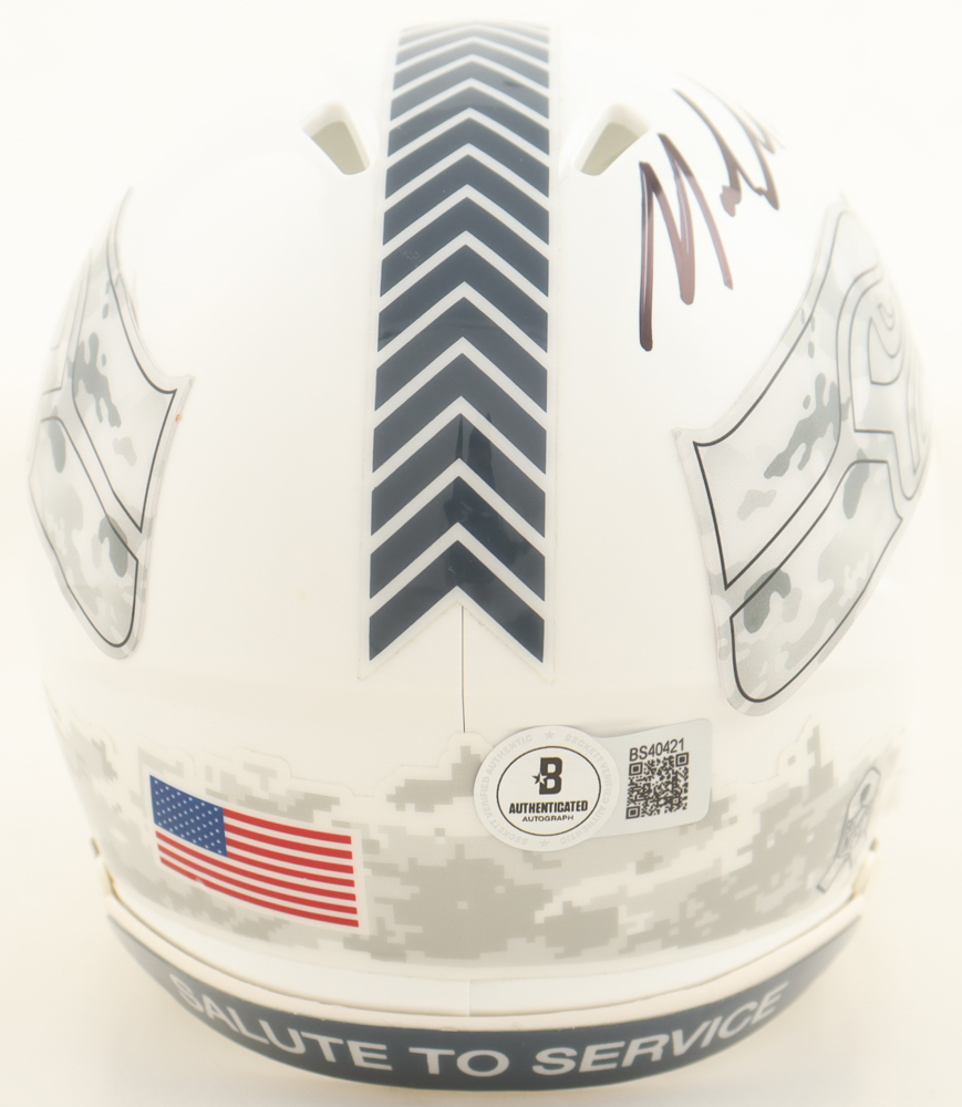 Riddell Seattle Seahawks Salute to Service Alternate Speed Mini Helmet. Hand-signed and inscribed by Mike Macdonald.