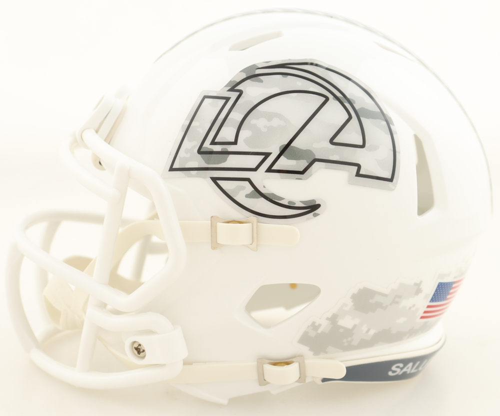 Riddell Los Angeles Rams Salute to Service Alternate Speed Mini Helmet. Hand-signed by Kyren Williams.