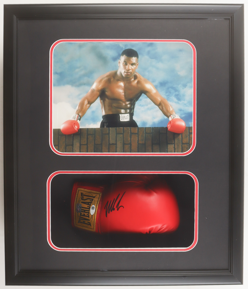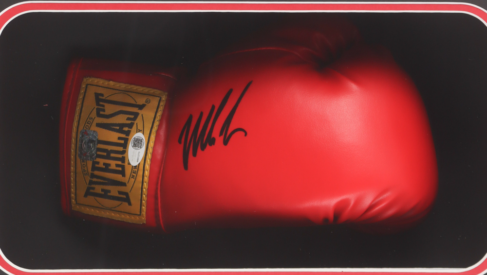 Shadowbox measures approximately 22.5" x 26.5" x 6.5" in size and features an Everlast boxing glove that has been hand-signed by Mike Tyson (HOF).