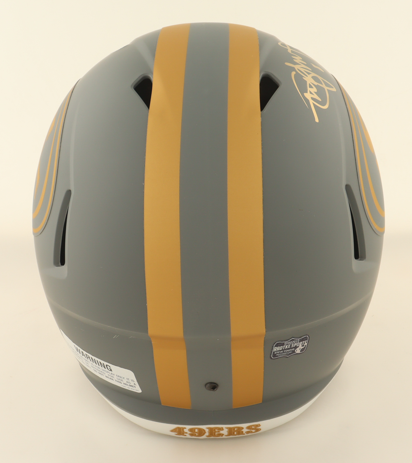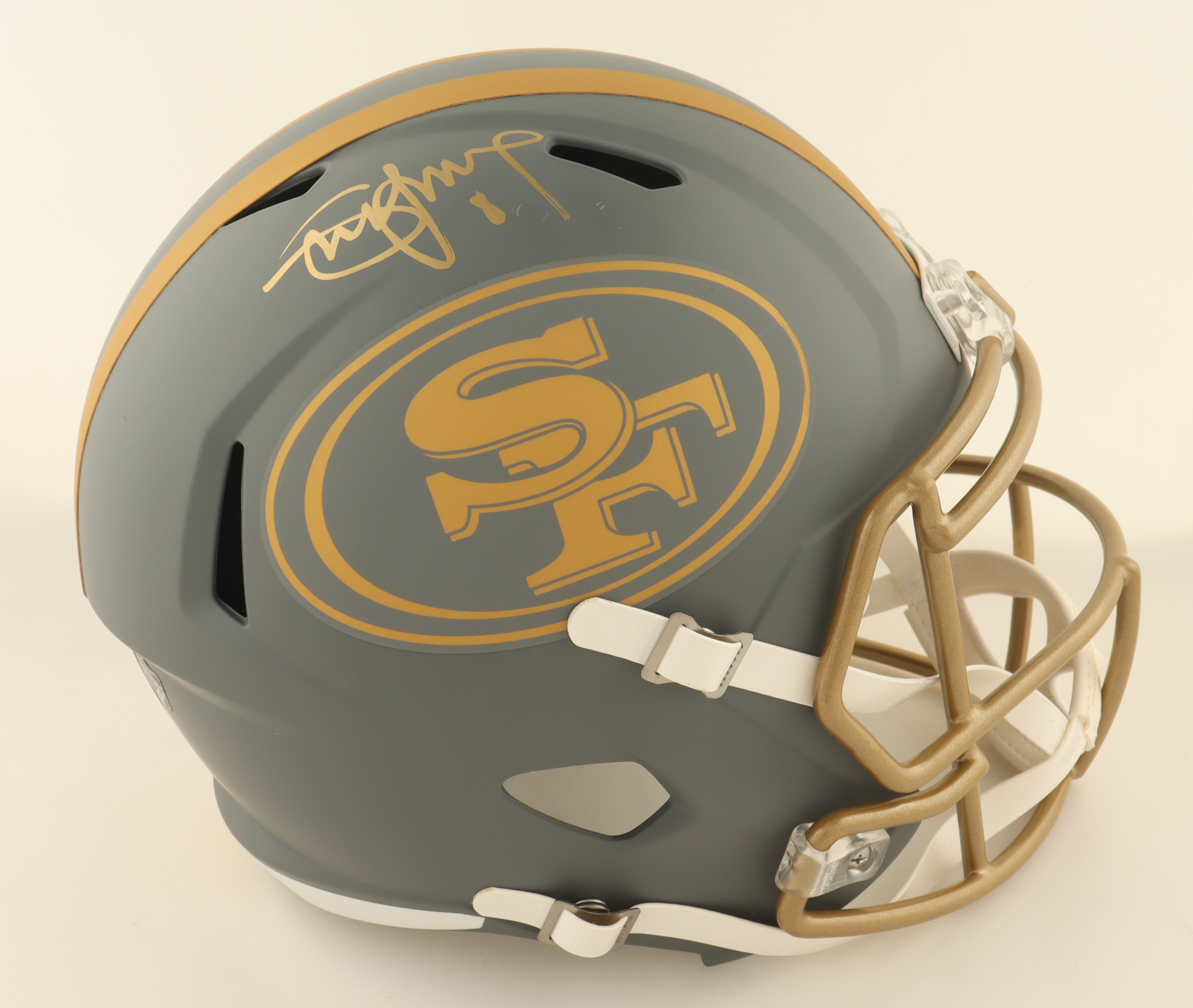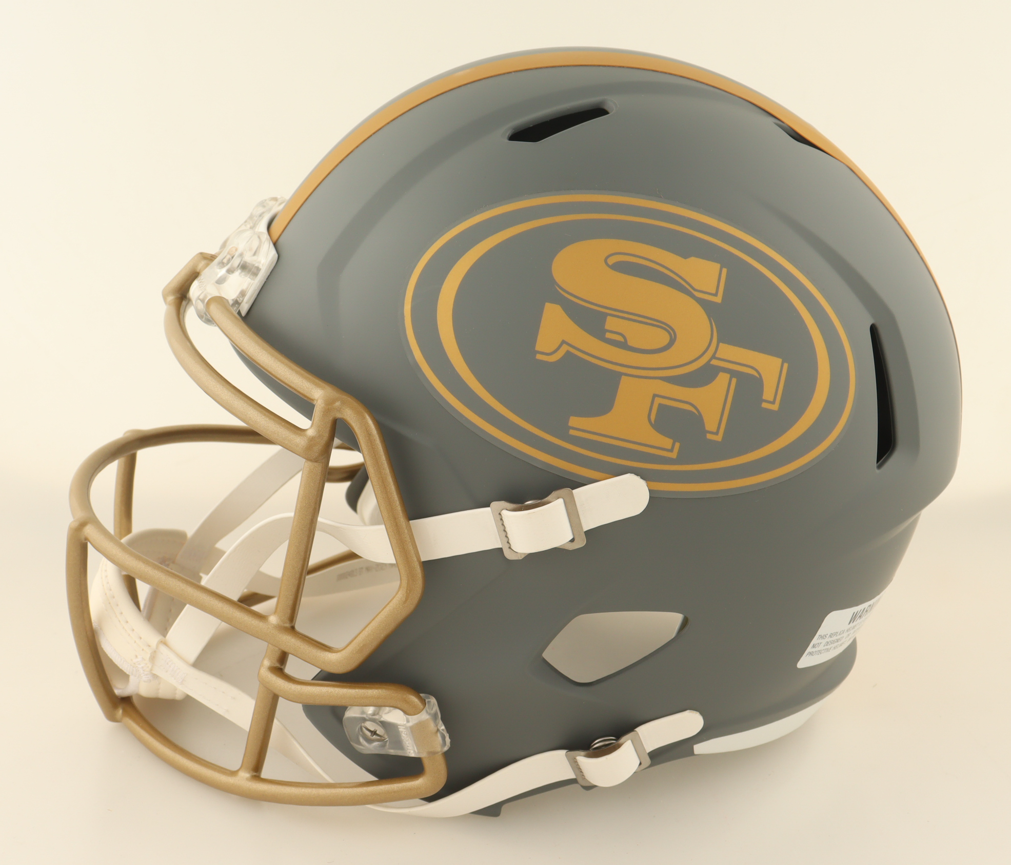 Riddell San Fransisco 49ers Full-Size Slate Alternate Speed replica helmet. Has been hand-signed by Steve Young (HOF).