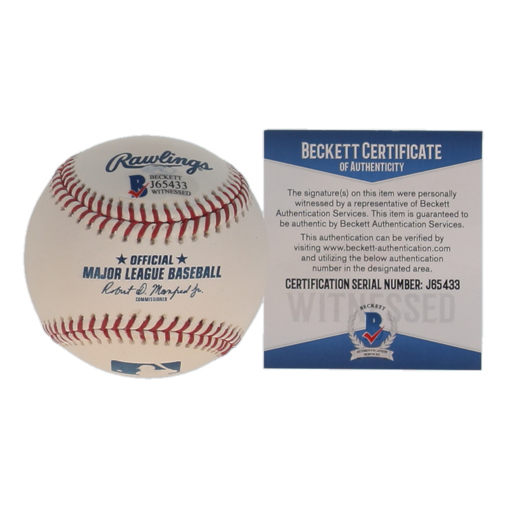 The autograph includes an official Beckett Authentication Services serially-numbered hologram and matching COA for authenticity purposes. The signing of this item was witnessed by Beckett.