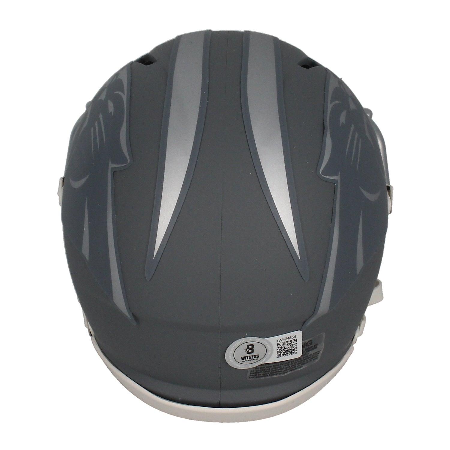 Riddell Carolina Panthers slate alternate speed mini helmet has been hand-signed by Julius Peppers (HOF).