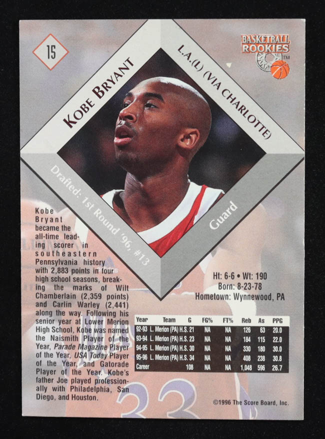 Kobe Bryant 1996 Score Board Rookies #15 RC