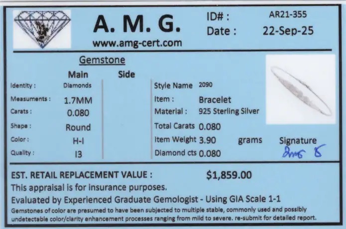 .08 CTW Natural Diamonds Rhodium Plated Designer Bracelet 7.5 Inches | Estimated Retail Value: $1,859 (AMG)