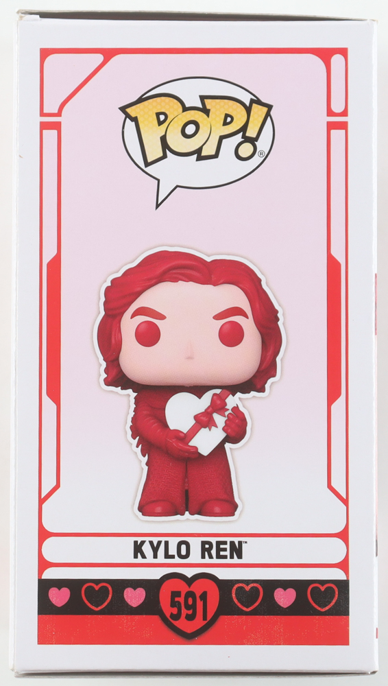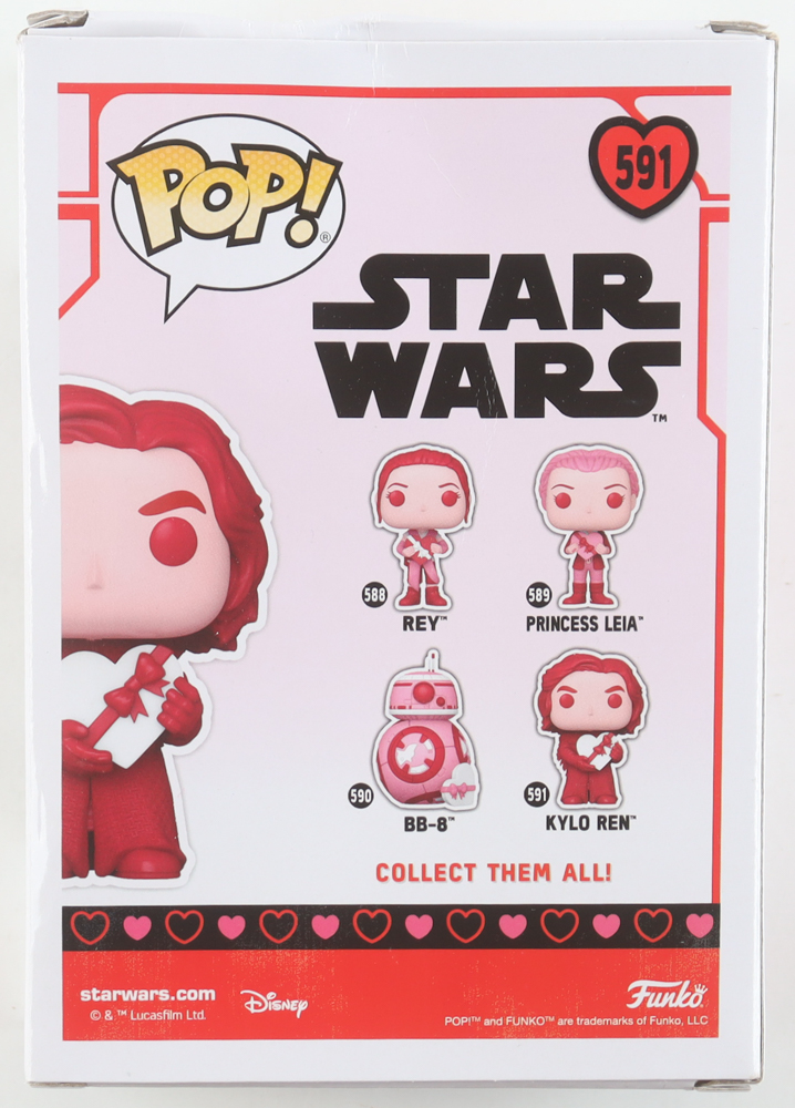 Vinyl figure measures approximately 4" tall and has been hand-signed on the packaging by Adam Driver (Kylo Ren). Please note, the top and back sides of the packaging are heavily dented and there is a tear on the right side, see photos for more details.