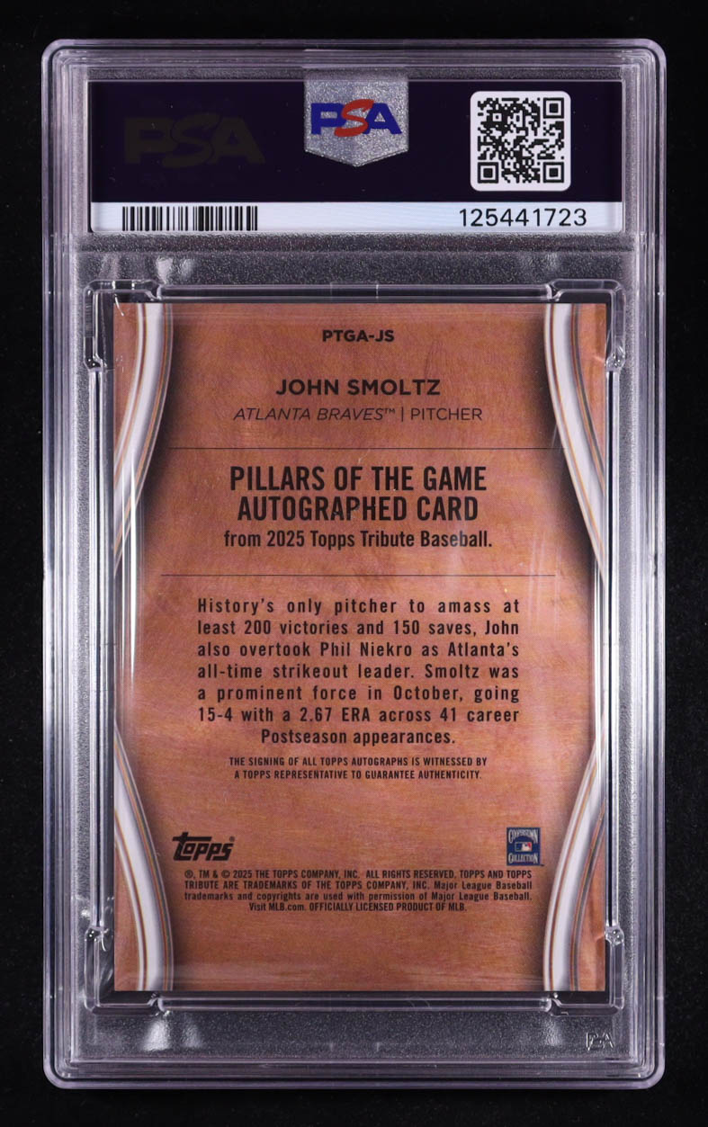 John Smoltz 2025 Topps Tribute Pillars of the Game Autographs Gold #PTGA-JS #51/75 (PSA 9)