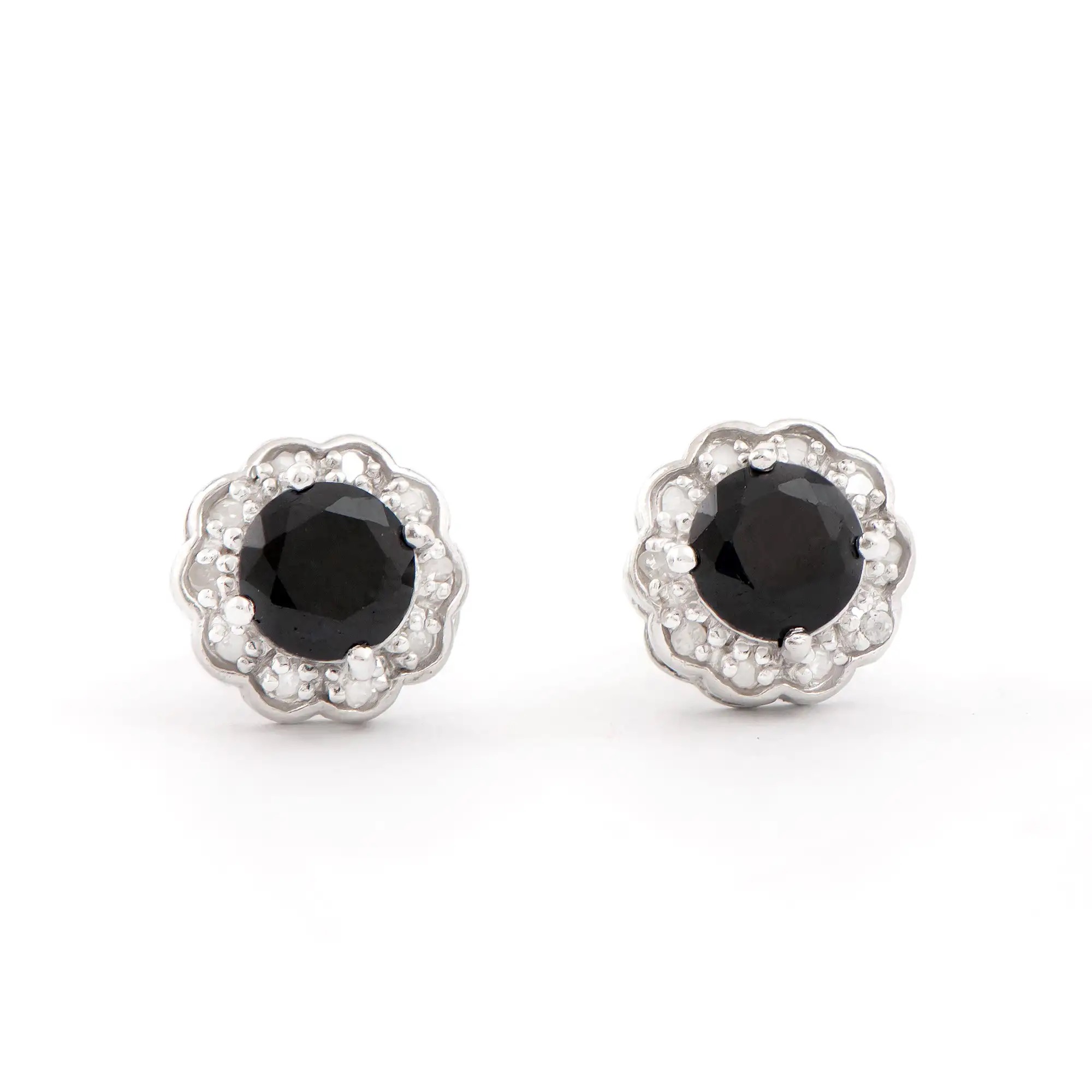 2.22 CTW Natural Diamonds & Sapphire Rhodium Plated Designer Earrings | Estimated Retail Value: $1,349 (AMG)