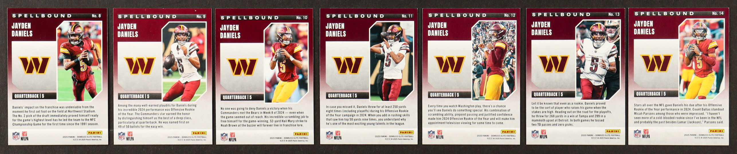 Jayden Daniels 2025 Elite Spellbound Green Complete Set of (7) Cards
