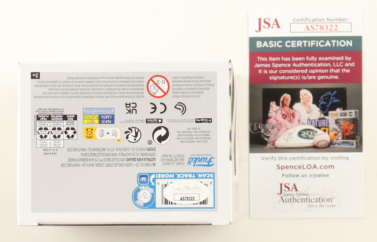 Funko Pop! vinyl figure measures approximately 4" tall. Hand-signed on the packaging by James Jude Courtney.