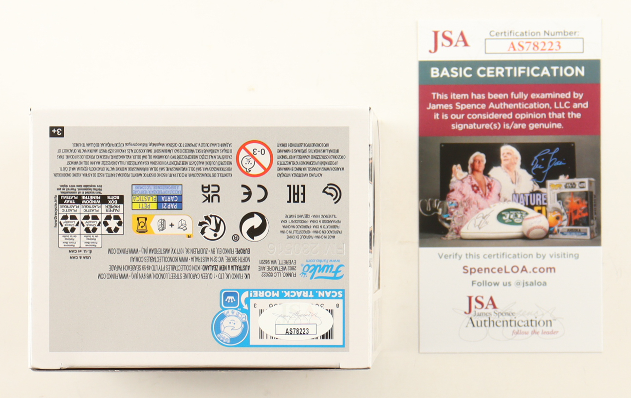 Funko Pop! vinyl figure measures approximately 4" tall. Hand-signed on the packaging by James Jude Courtney.