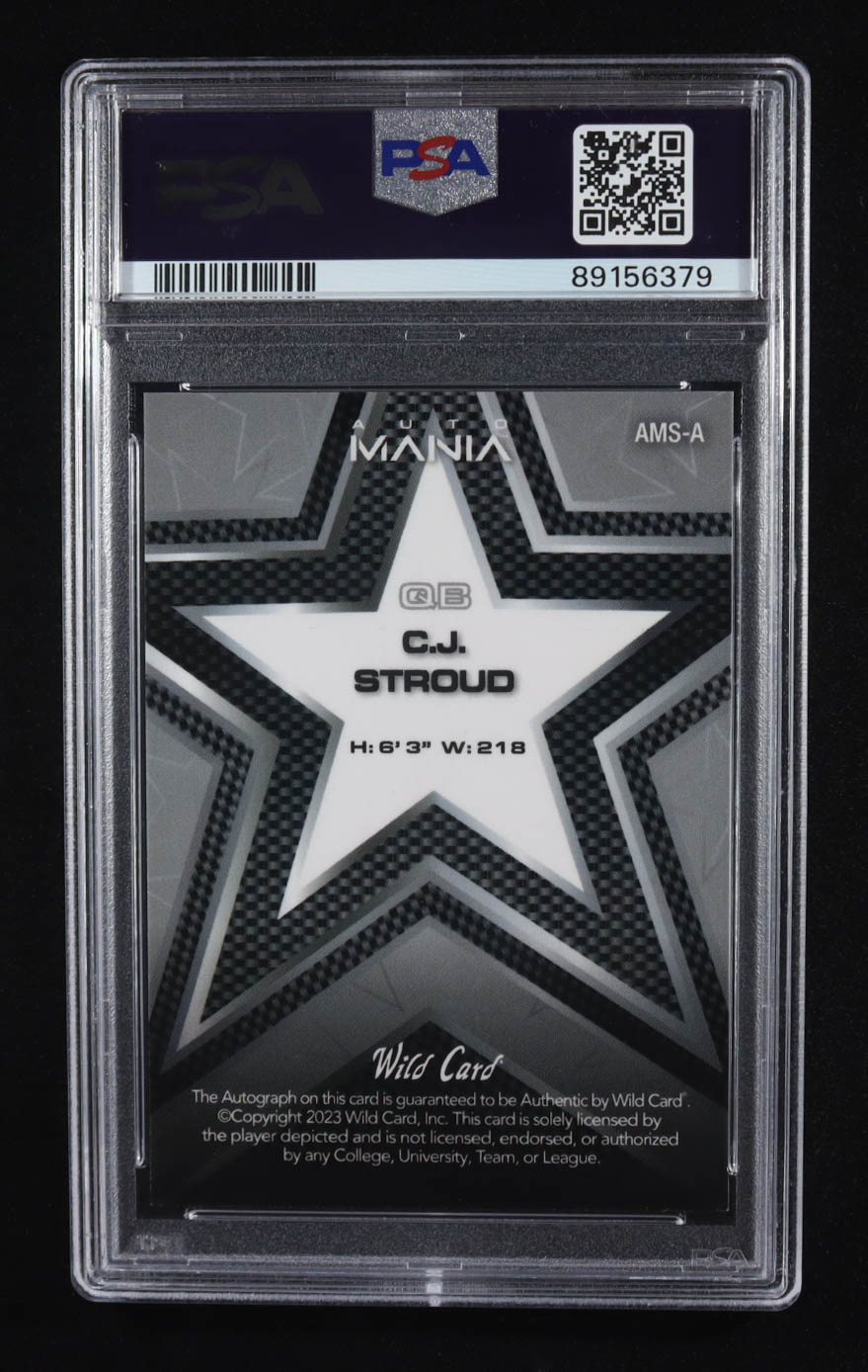 CJ Stroud 2023 Wild Card Auto Mania Autograph Star Prizm Teal #AMSA #1/5 RC (PSA 9)