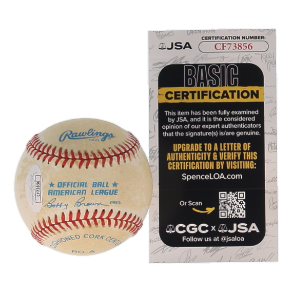 Rawlings Official American League Baseball. Hand-signed by Frank Robinson (D. 2019, Baltimore Orioles, HOF). Please note, the baseball is naturally toning.