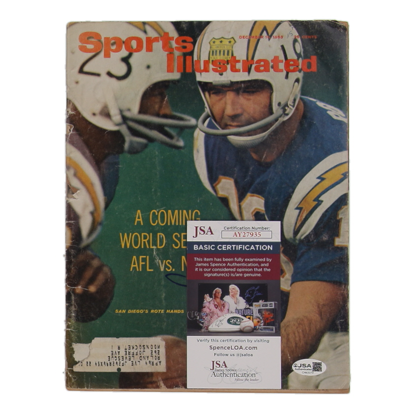 December 16th, 1963 Issue of Sports Illustrated Magazine has been hand-signed on the front cover by Tobin Rote (D. 2000, San Diego Chargers). Please refer to photos for more details.