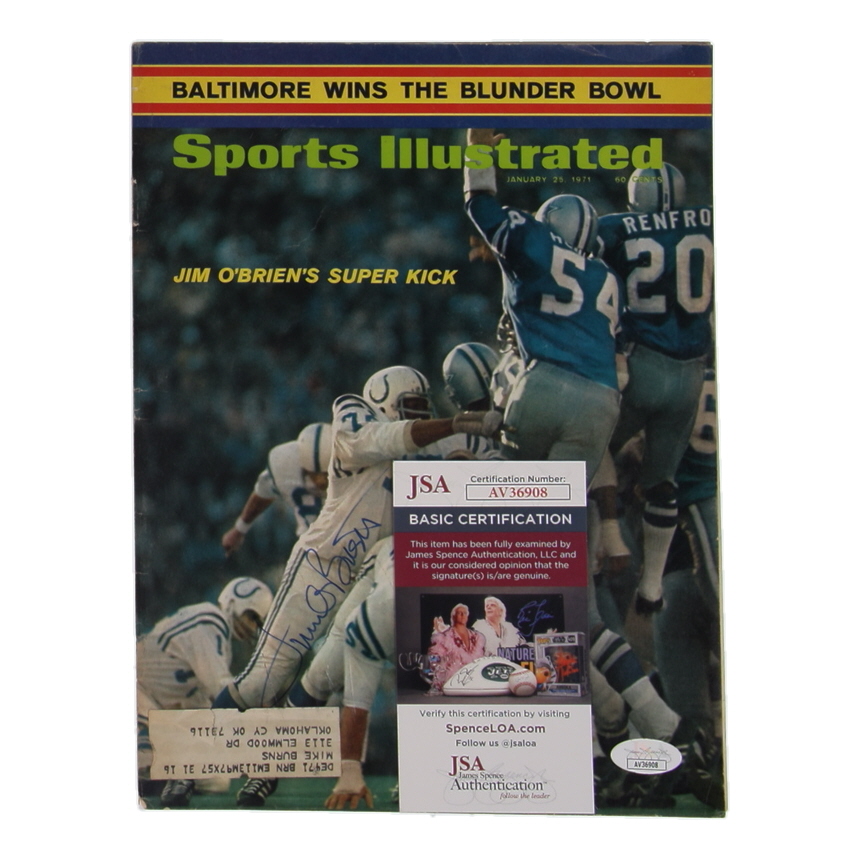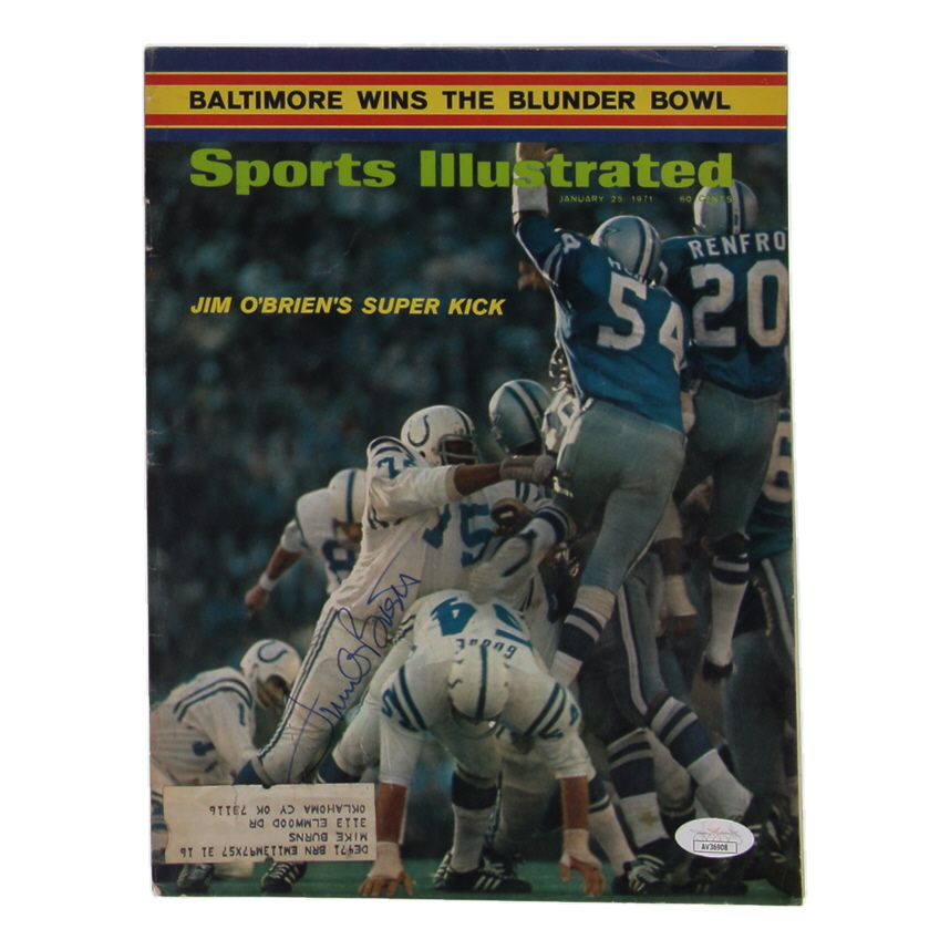 January 25th, 1971 Issue of Sports Illustrated Magazine Cover has been hand-signed on the front cover by Jim O'Brien (Baltimore Colts). Please refer to photo for more details.