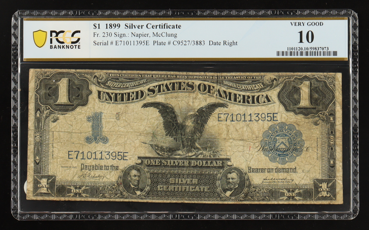 1899 U.S. $1 "Black Eagle" Silver Certificate - Fr. 230 Date Right, Signed: Napier / McClung (PCGS Very Good 10)