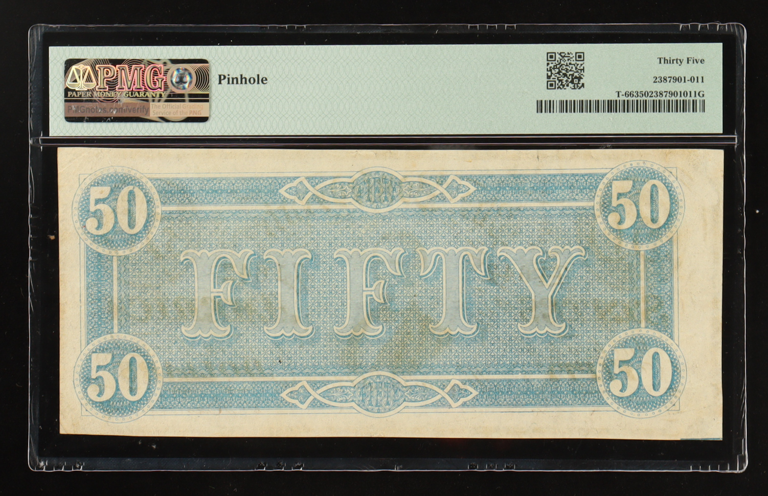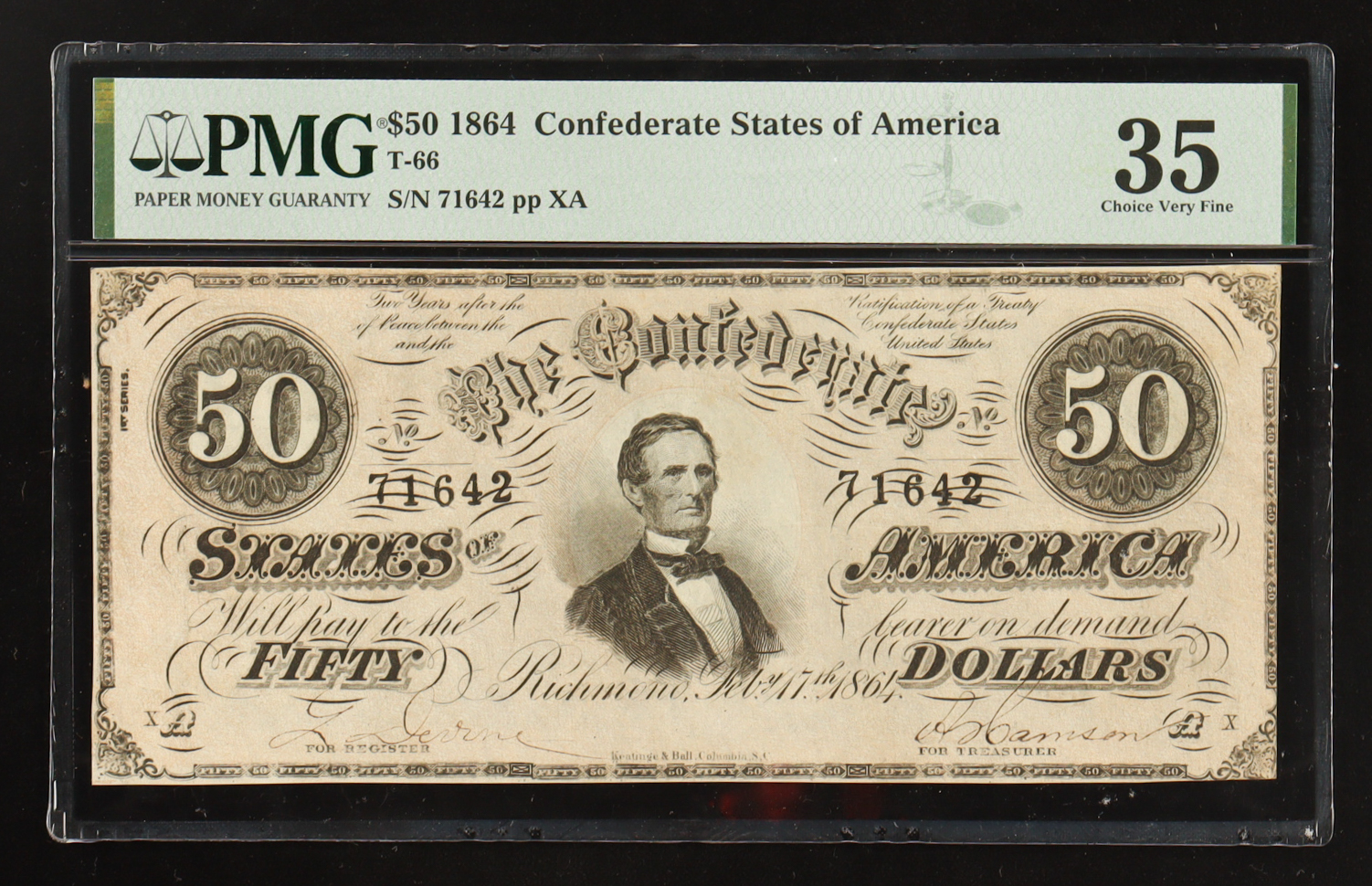 1864 Confederate $50 Currency Note, 1st Series T-66 (PMG Choice Very Fine 35)