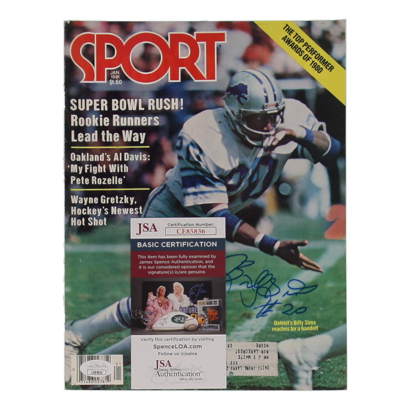 January 1981 Issue of Sport Magazine Cover has been hand-signed on the front cover by Billy Sims (Detroit Lions). Please refer to photo for more details.