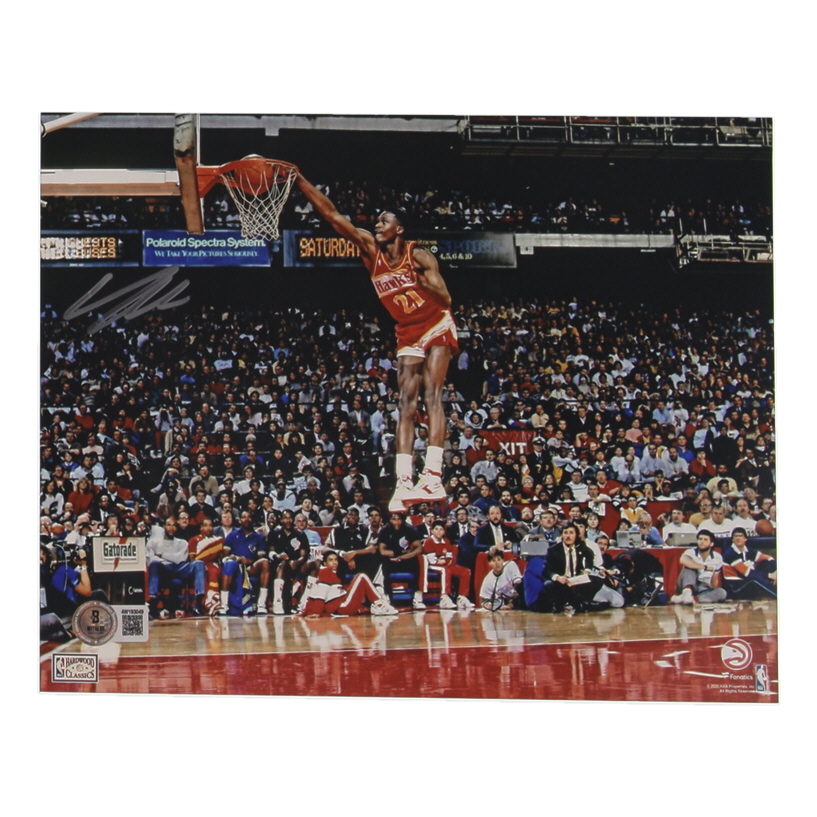 Photo measures 8" x 10" in size and has been hand-signed by Dominique Wilkins (Atlanta Hawks, HOF).