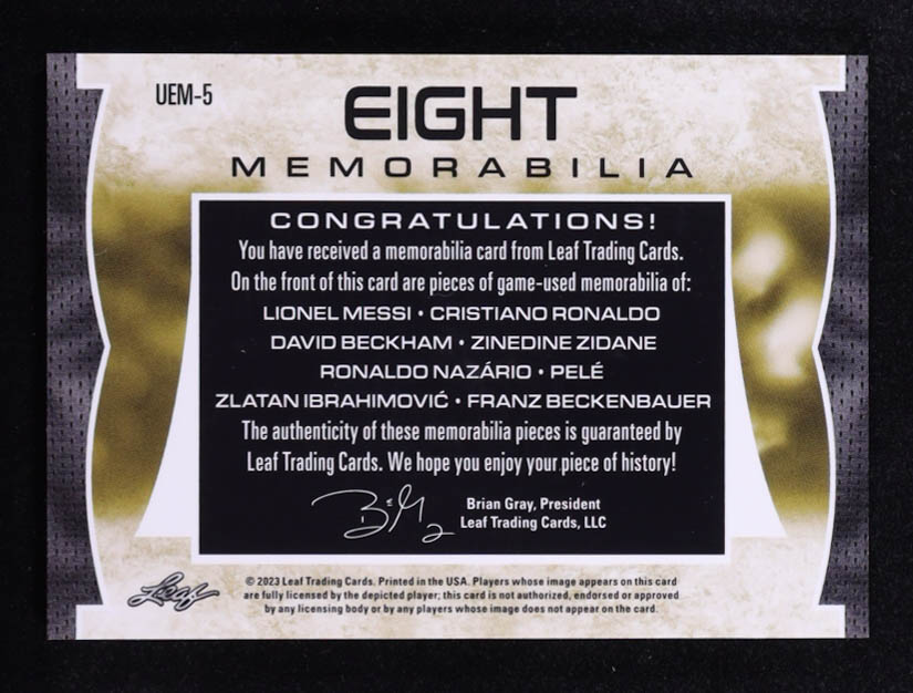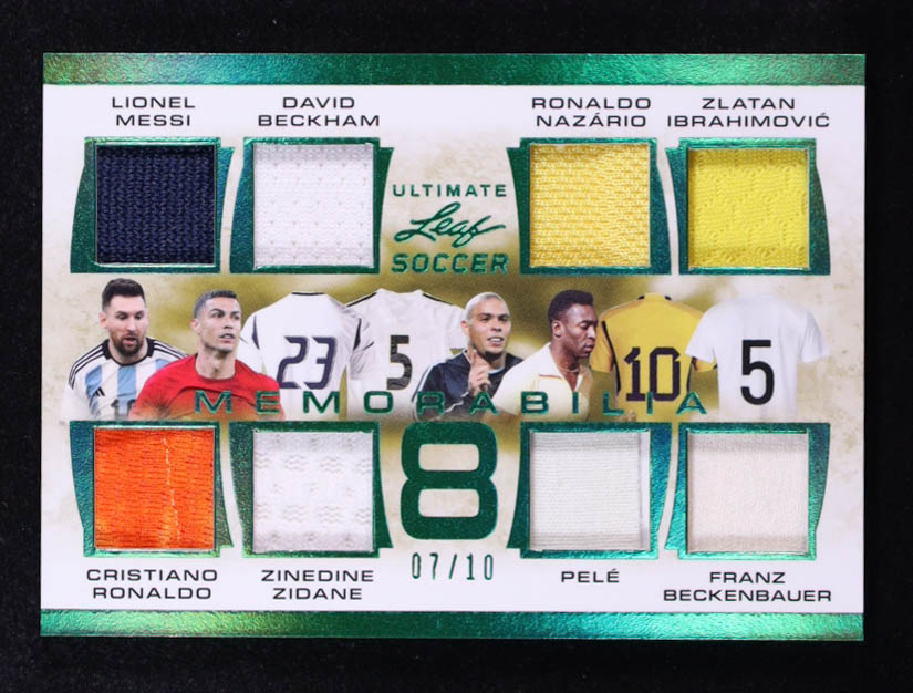 Lionel Messi/Cristiano Ronaldo/David Beckham/Zinedine Zidane/Ronaldo Nazário/Pelé/Zlatan Ibrahimovic/Franz Beckenbauer 2022 Leaf Ultimate Soccer Ultimate Eight Memorabilia Emerald #UEM5 #7/10