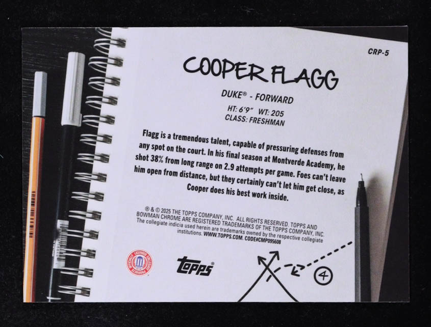 Cooper Flagg 2024-25 Bowman Chrome University College Rule Playbook Refractors #CRP5 RC
