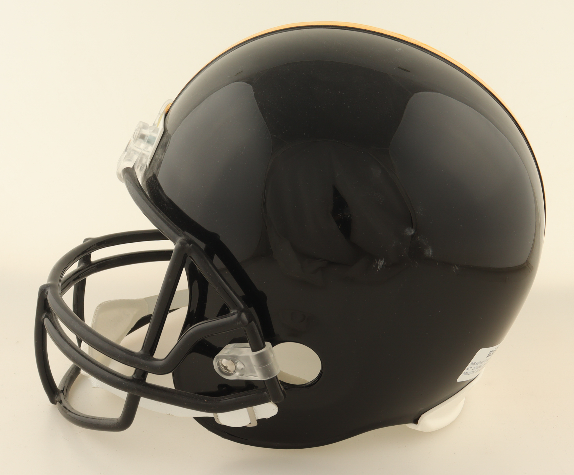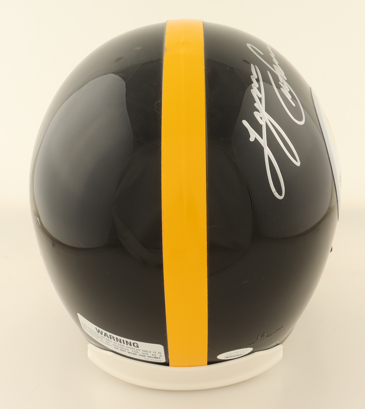 Riddell Pittsburgh Steelers full-size replica helmet. Hand-signed and inscribed by Lynn Swann (HOF). Please note there is a stain on the left side of the helmet.