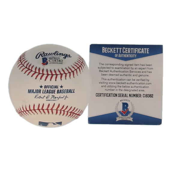 The autograph includes an official Beckett Authentication Services serially-numbered hologram and matching COA for authenticity purposes.
