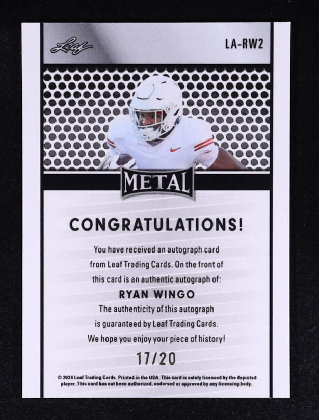 Ryan Wingo 2024 Leaf Metal Collective Leaf Autographs Light Blue Shimmer #LARW2 #17/20 RC