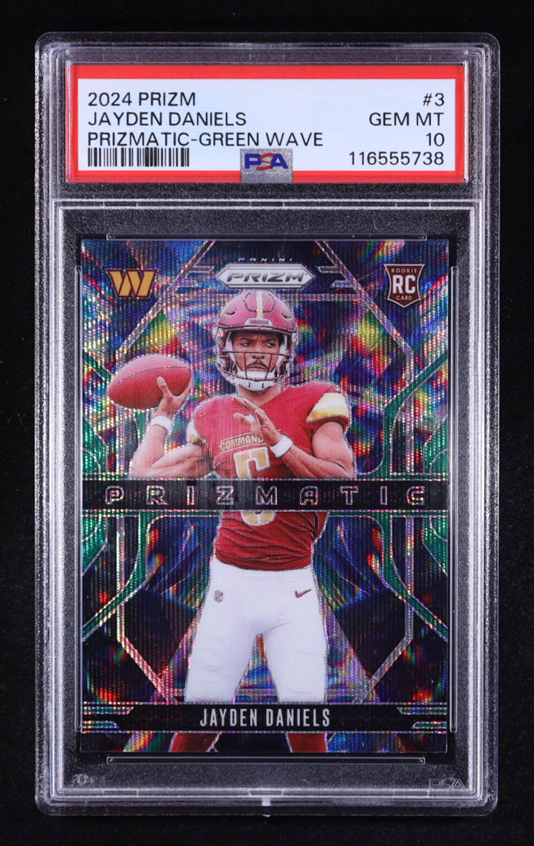 Jayden Daniels 2024 Panini Prizm Prizmatic Prizms Green Wave #3 RC (PSA 10)