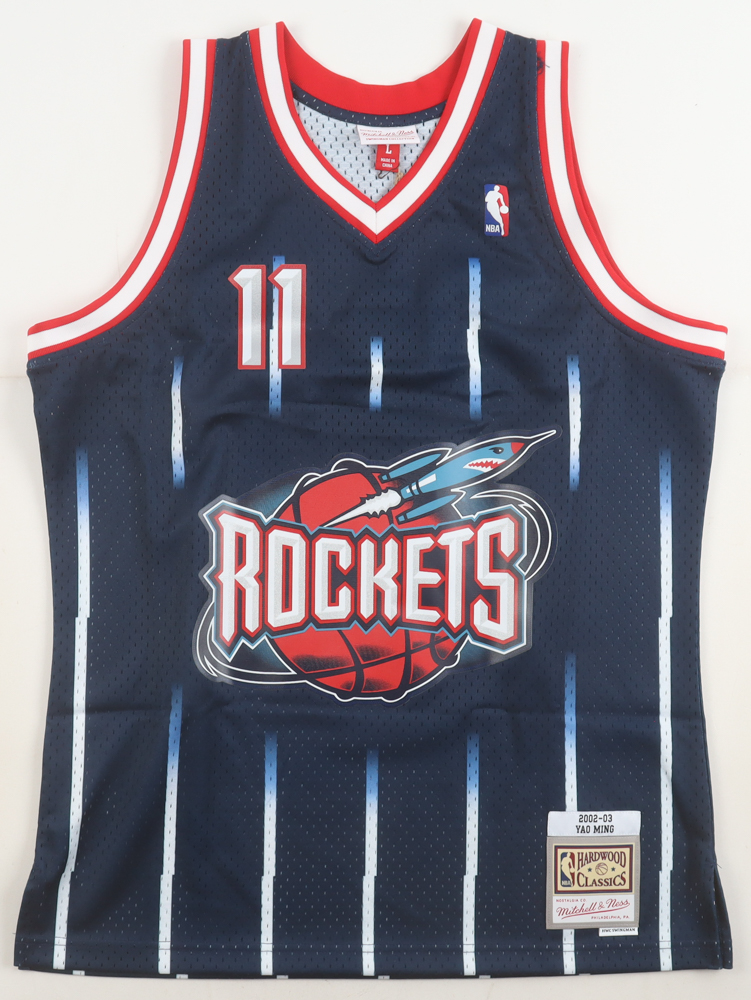 Mitchell & Ness 2002-03 Hardwood Classics jersey with everything pressed on, size L. Hand-signed by Yao Ming (Houston Rockets, HOF).