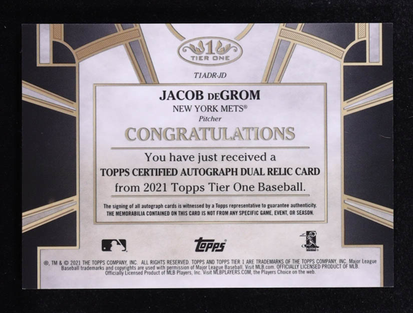 Jacob deGrom 2021 Topps Tier One Autograph Relics Dual Patch #T1ARJD #18/25