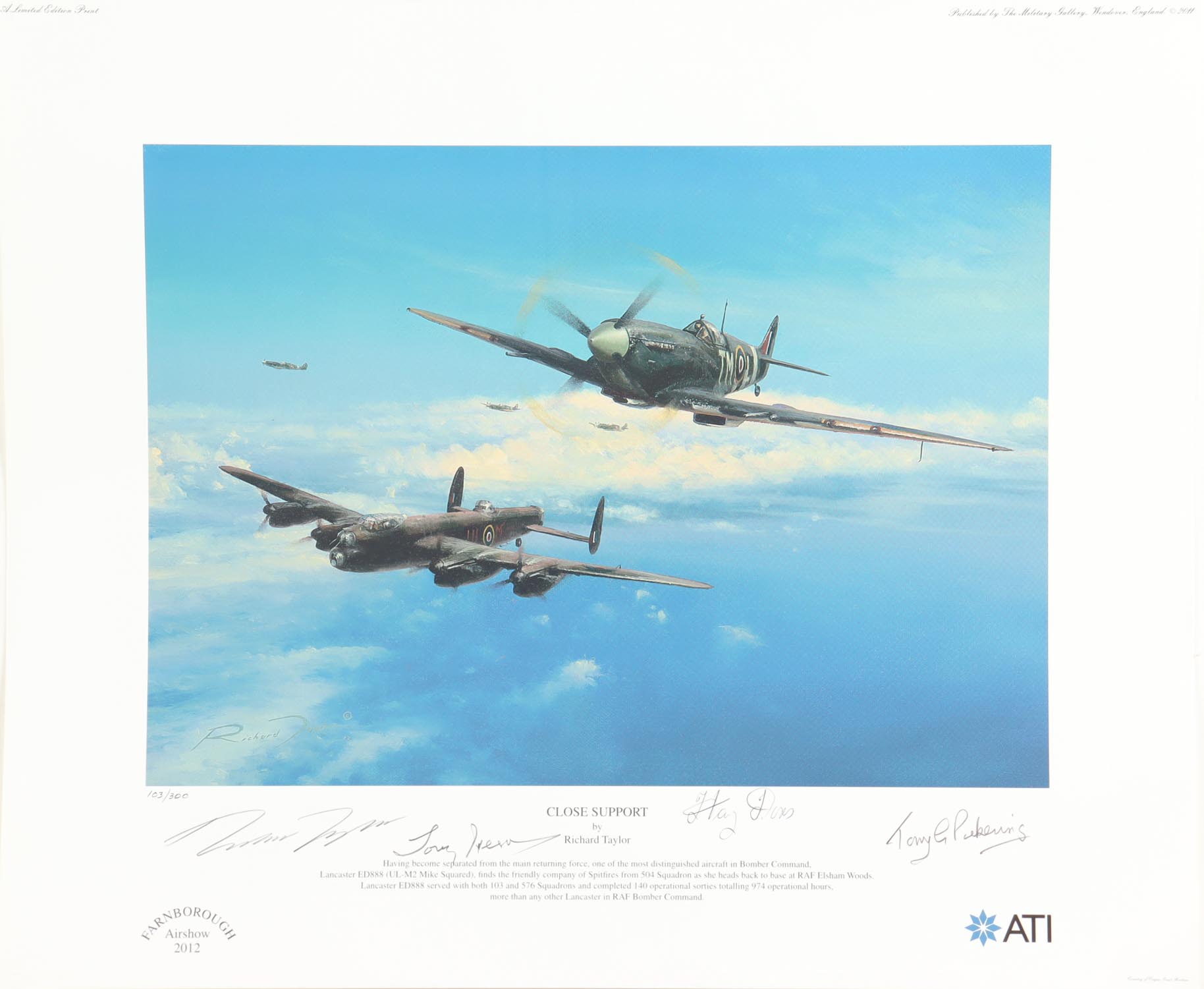 WWII RAF Battle of Britain Multi Signed 'Close Support' Richard Taylor 13.5x16.5 Lithograph (AIV) LE 300 x 3 RAF Pilots