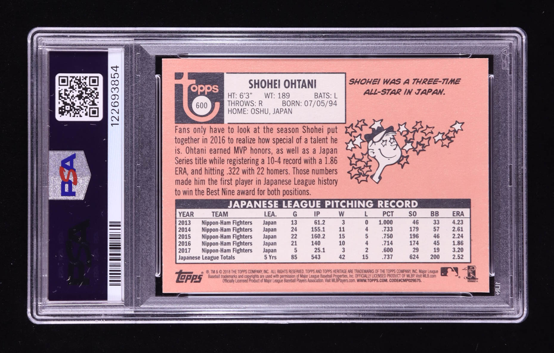 Shohei Ohtani 2018 Topps Heritage #600 RC (PSA 9)