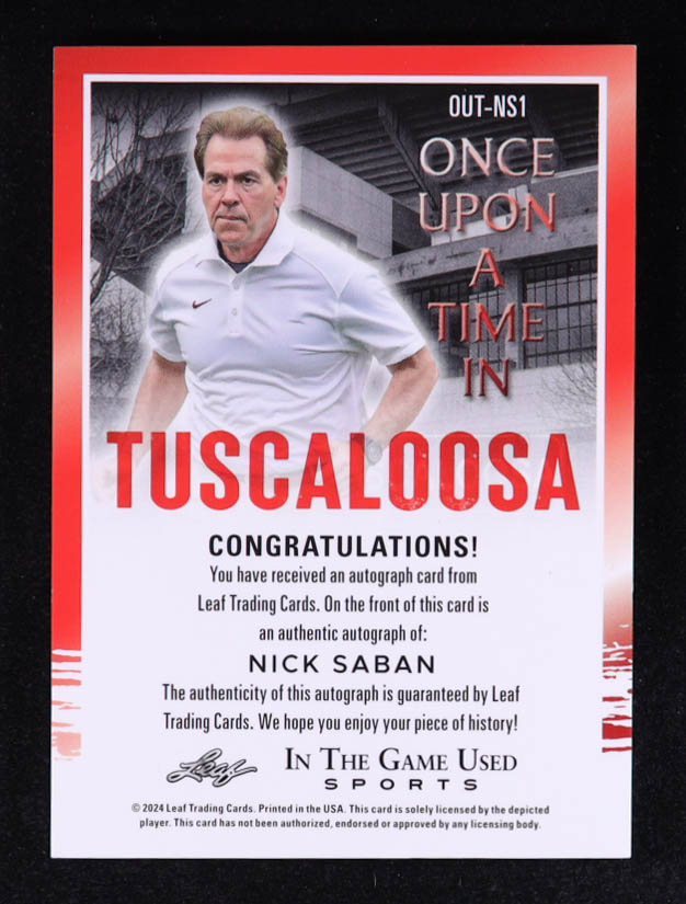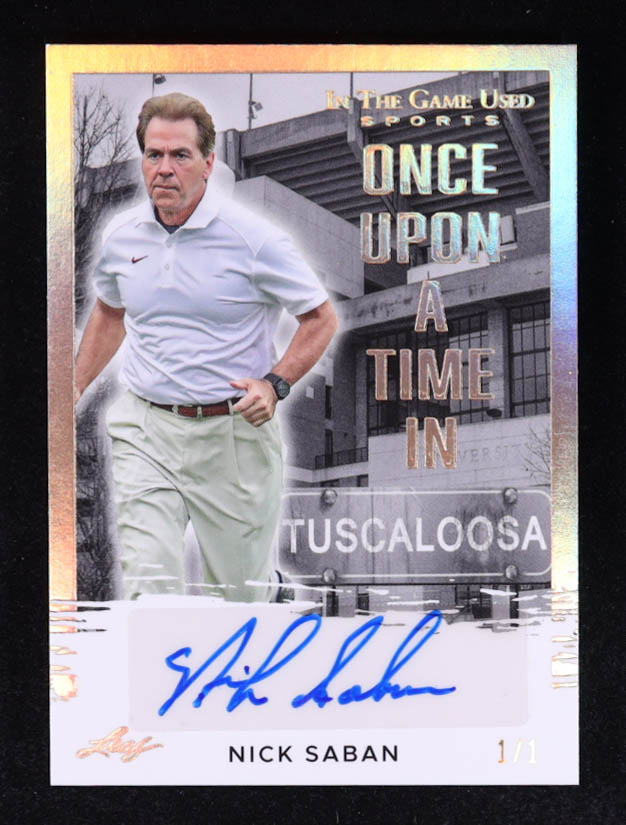 Nick Saban 2024 Leaf In The Game Used Once Upon a Time In Autographs Gold Holo #OUTNS1 #1/1