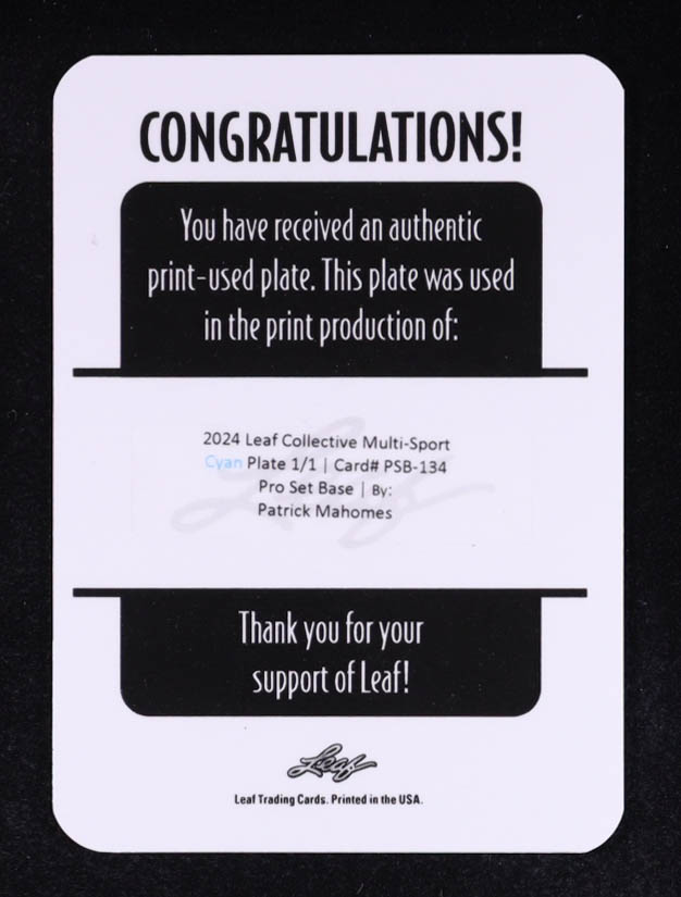 Patrick Mahomes II 2024 Leaf Collective Multi-Sport Cyan Printing Plate #PSB134 #1/1