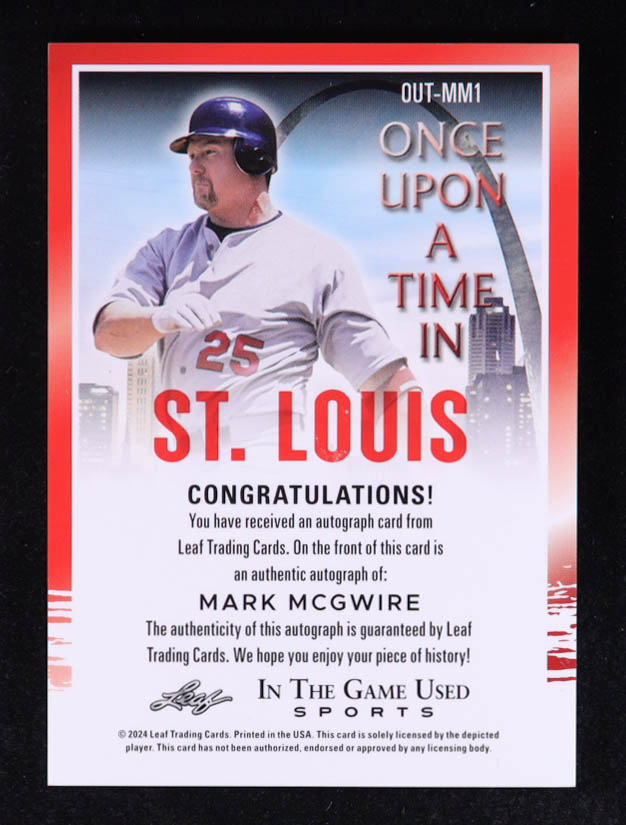 Mark McGwire 2024 Leaf In The Game Used Once Upon a Time In Autographs Bronze Holo #OUTMM1 #3/5