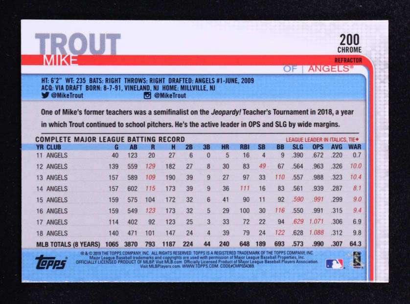 Mike Trout 2019 Topps Chrome Refractors #200