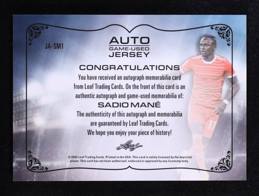 Sadio Mané 2022 Leaf Ultimate Soccer Jersey Autographs Platinum Spectrum #JASM1 #10/30