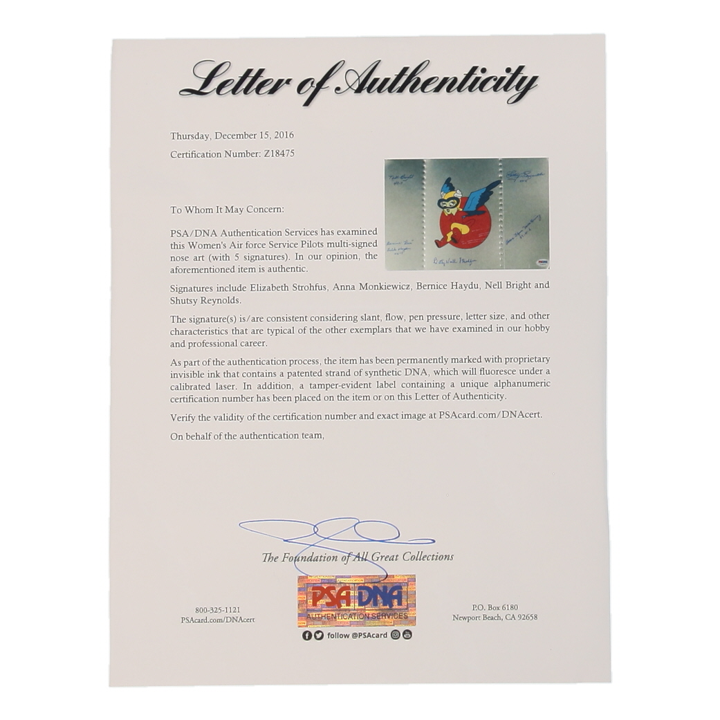 Women's Air Force Service Pilots Signed "Fifinella" Original Nose Art Signed by (5) Pilots (PSA)
