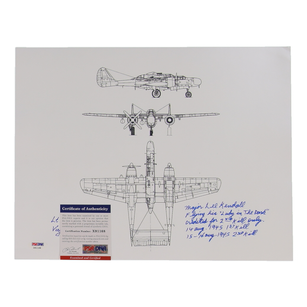 This hand-signed photograph by Lee Kendall and Robert Ferguson serves as a significant collectible, honoring the legacy of the P-61 Black Widow and the courageous pilots who flew it. The piece is authenticated by PSA/DNA and includes their Certificate of Authenticity, ensuring its provenance and value.