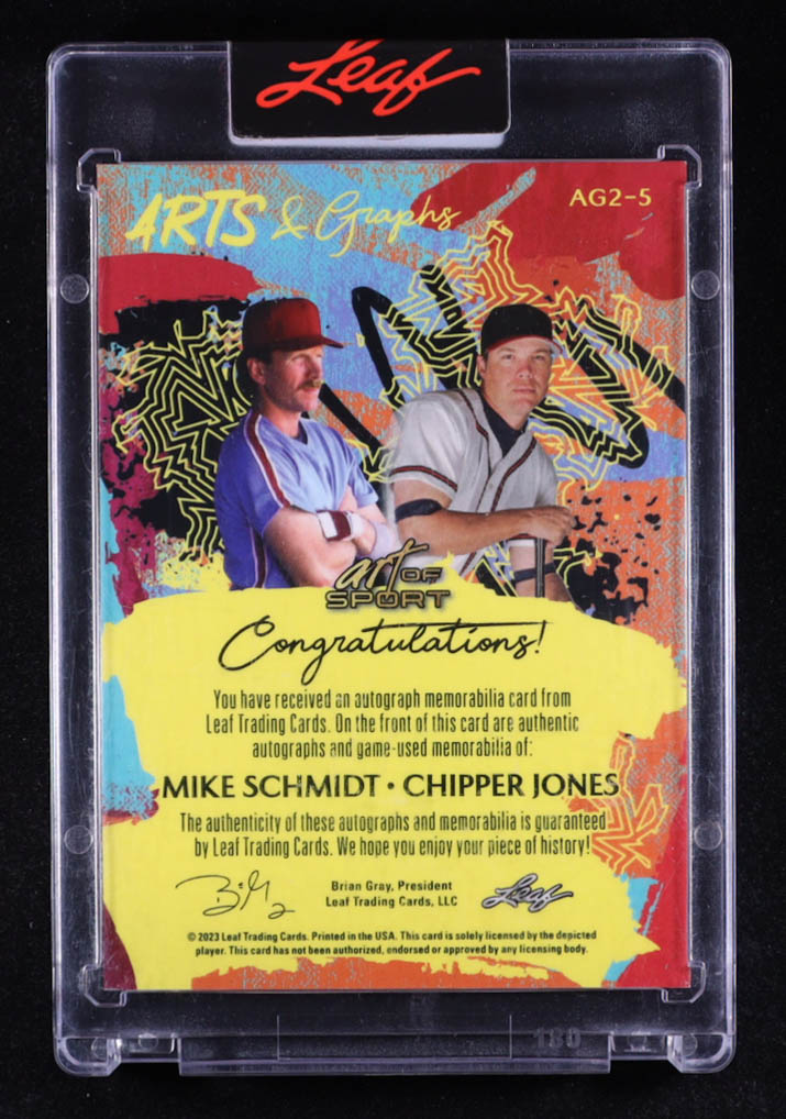 Mike Schmidt / Chipper Jones 2023 Leaf Art of Sport Arts and Graphs Autographs Red #AG25 #2/8