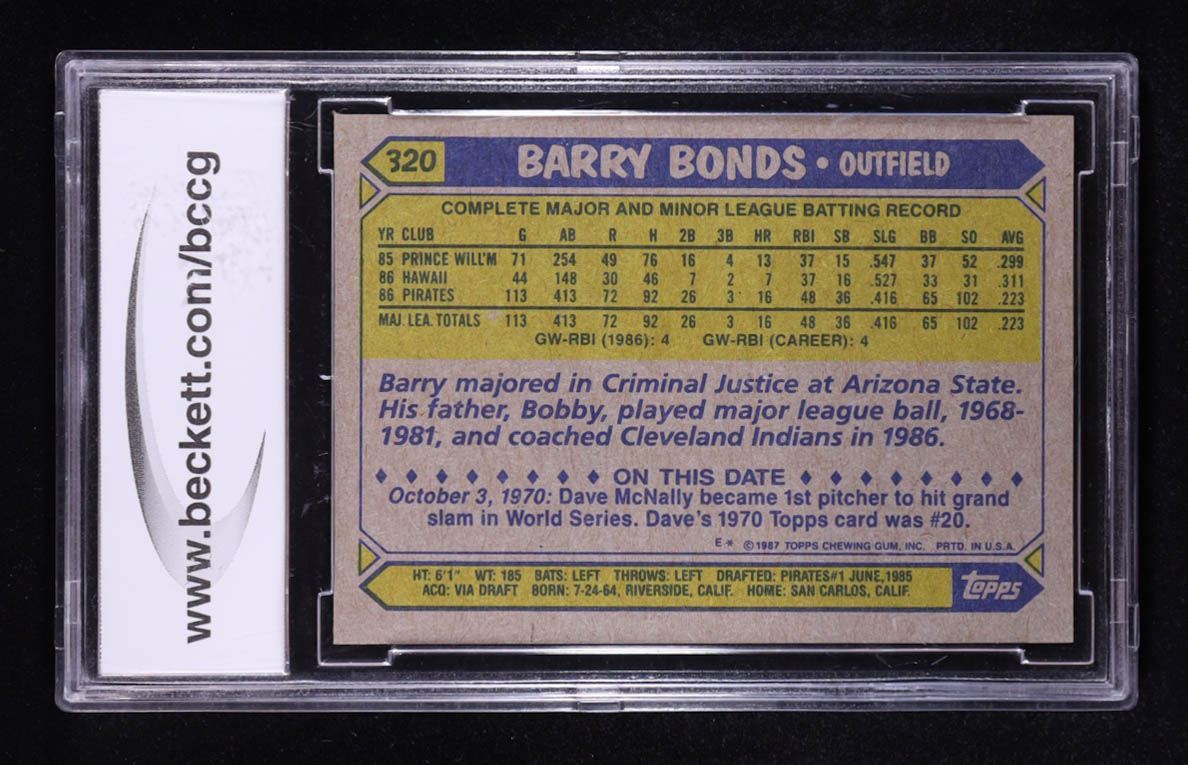 Barry Bonds 1987 Topps #320 RC (BCCG 9)