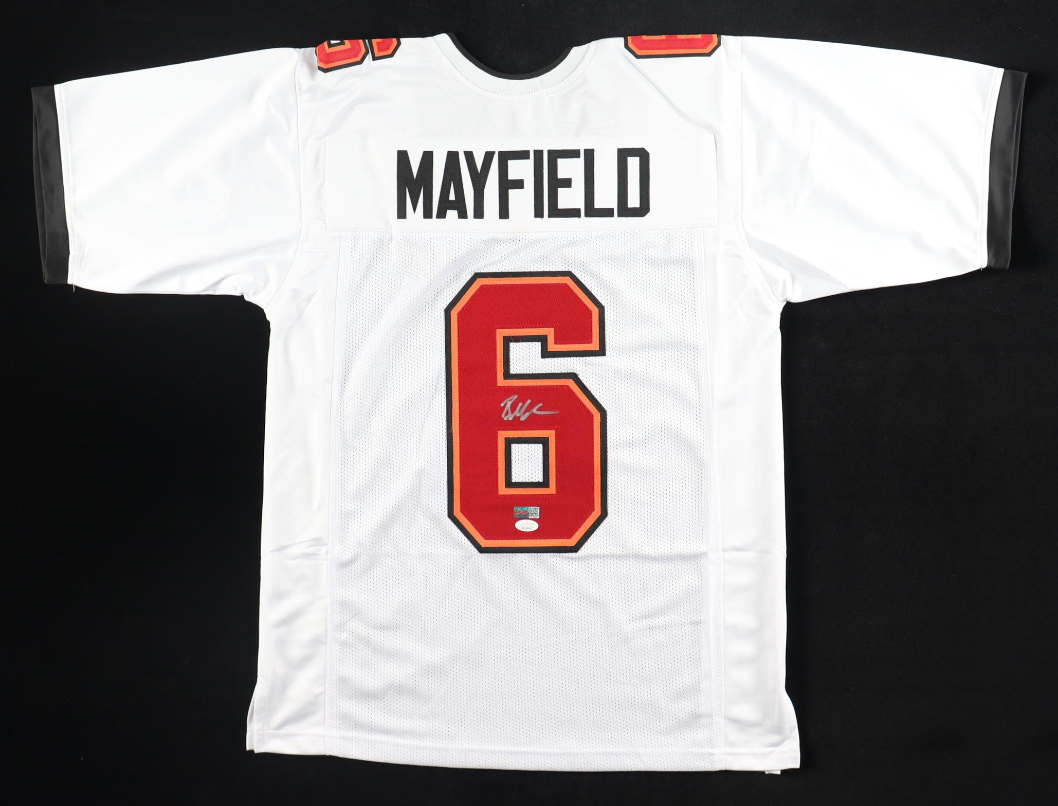 Custom jersey with everything sewn on, size XL. Hand-signed by Baker Mayfield.